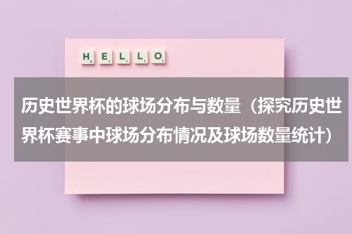 历史世界杯是全球最重要的足球赛事之一,每四年举办一次。在过去的历届世界杯中,比赛场地的选择和数量都是备受关注的话题之一。本文将探究历史世界杯的球场分布情况以及球场数量的统计数据。第十三届世界杯13.1球场分布:墨西哥各地,包括墨西哥城、瓜达拉哈拉、皮埃特拉等。未来的世界杯可能会在更多国家和地区举办,球场数量也将进一步增加。无论是作为主办国家还是作为观众,球场承载着激情与回忆,成为了世界杯独特的魅力所在。...
